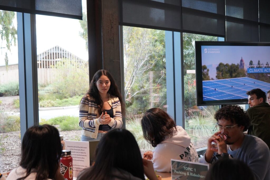 On a rainy Friday afternoon, a group of more than 50 undergraduate and graduate students participated in a transportation focus group. Students lined up outside the door, eager to share their thoughts on Stanford’s transportation system despite the cold wind and rain. The turnout rate was high, and the discussions were lively and productive. This joint effort by Stanford Transportation and the Office of Sustainability was led by Kaitlyn Sanchez, a Community Engagement intern gathering feedback for the climate action plan. For over a year, Kaitlyn’s work in the Office of Sustainability revolved around gathering and understanding people’s input about Stanford’s transit system, among other topics. She coordinated between departments to plan and facilitate the Focus Group discussions.