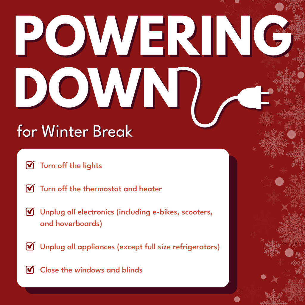 When campus winds down for break, it’s one of Stanford’s biggest opportunities to reduce energy waste. By taking a few simple steps before you leave, you help lower emissions, protect equipment, and keep buildings running efficiently while occupancy is low. Whether you’re a student, staff/faculty member, facility manager, or lab personnel, there are tips for everyone in the Stanford community to save energy while taking a break this holiday season!