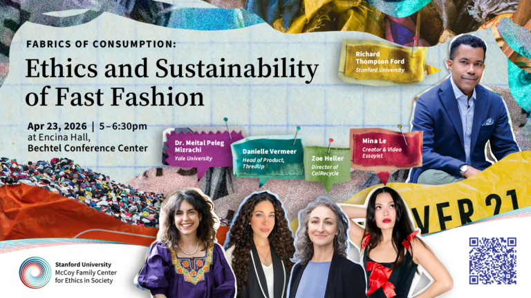 For the week of Earth Day, The McCoy Family Center for Ethics in Society invites you to Fabrics of Consumption: Ethics and Sustainability of Fast …